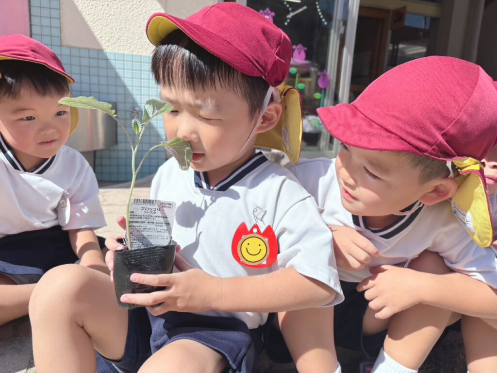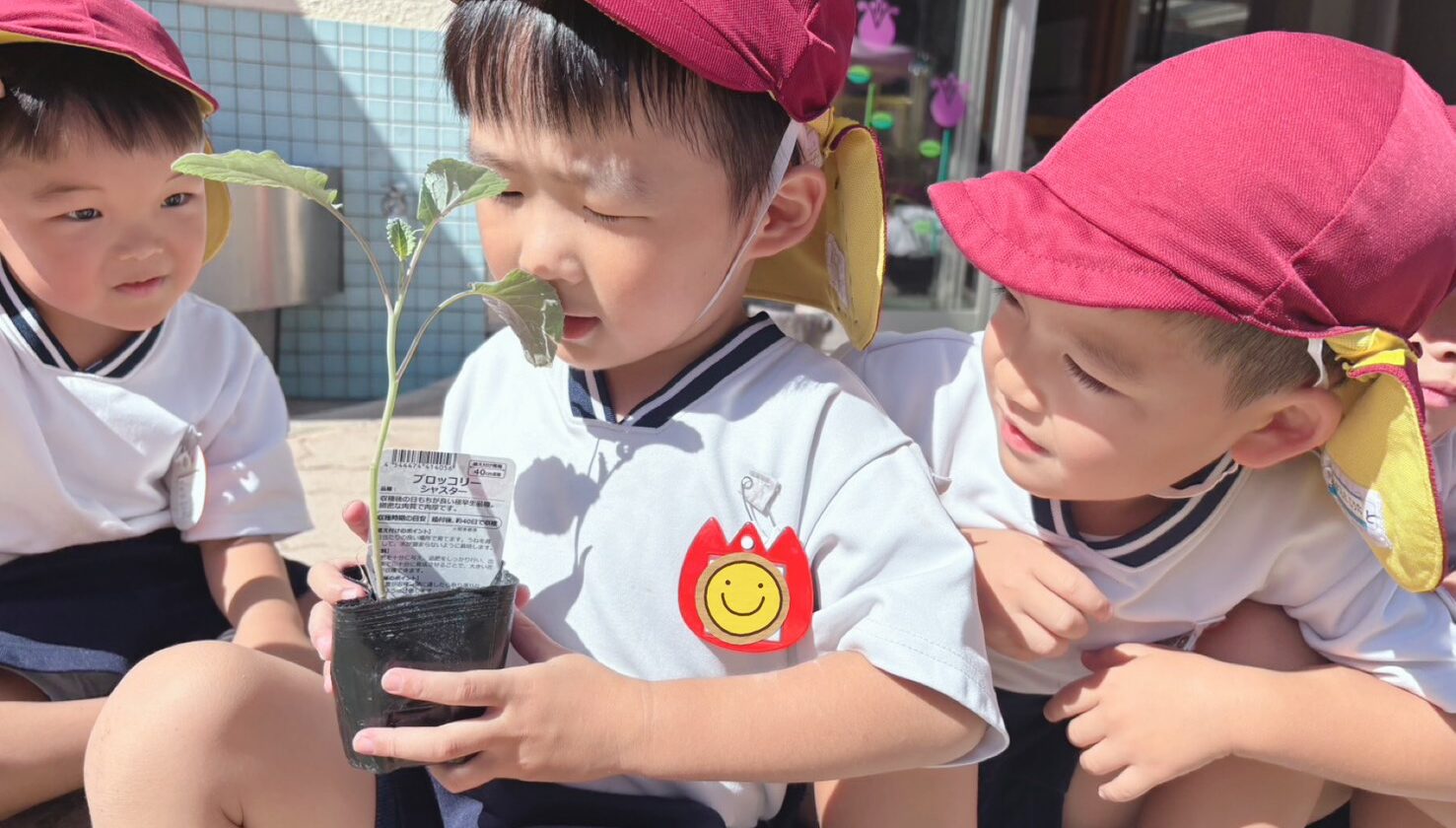 年中組はさっそく野菜の種を植えました。同じ種でも野菜の種類によって種の見た目が全然異なることにびっくり。お友だちの種と一生懸命見比べていました。