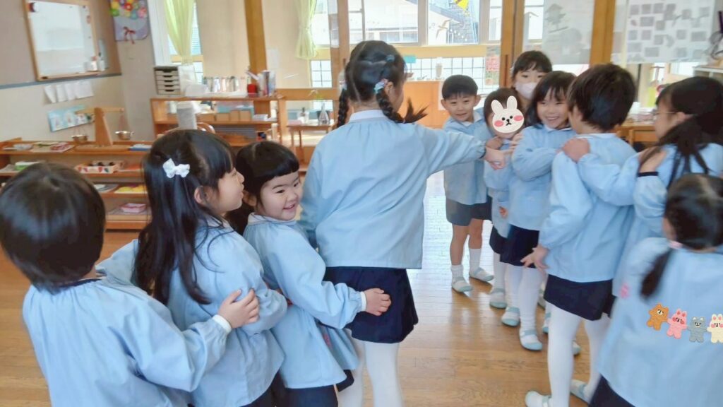 先日、3学期に入ってからは初めてとなるにこにこ活動を行いました。各チームでゲームなどをして楽しく過ごしました。にこにこ活動を通して仲良くなった異年齢のお友だちと自主的に関わる様子も見られるようになりましたよ。
