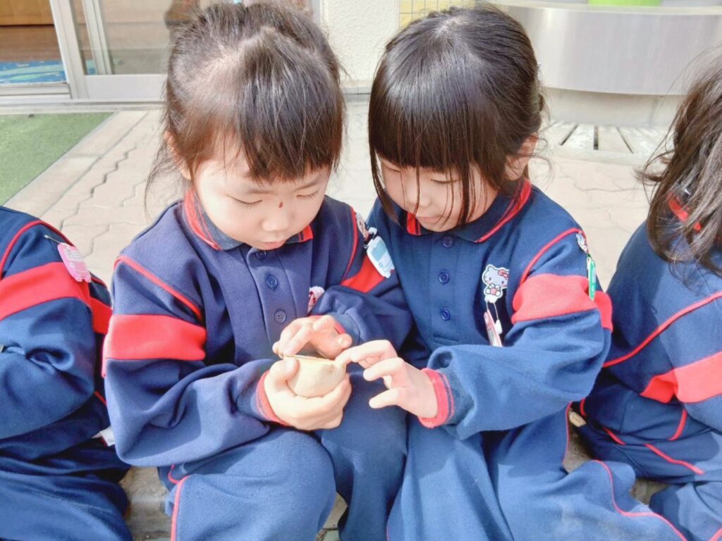 先日、年少組は畑に野菜を植えました。