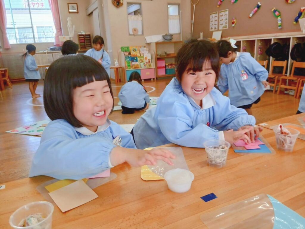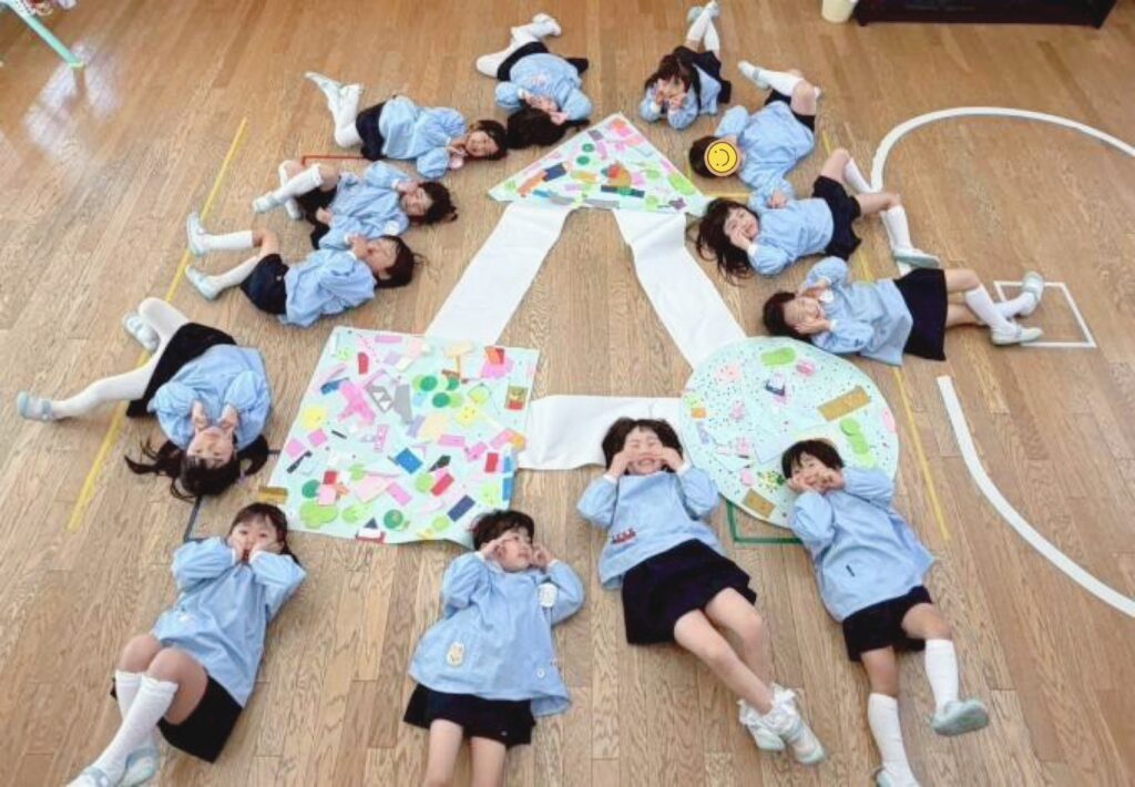 1年間たくさん取り組んできた貼る・描く活動。最後にはみんなの絵が繋がってびっくり!みんなの楽しい・面白いがどんどん広がっていきました。