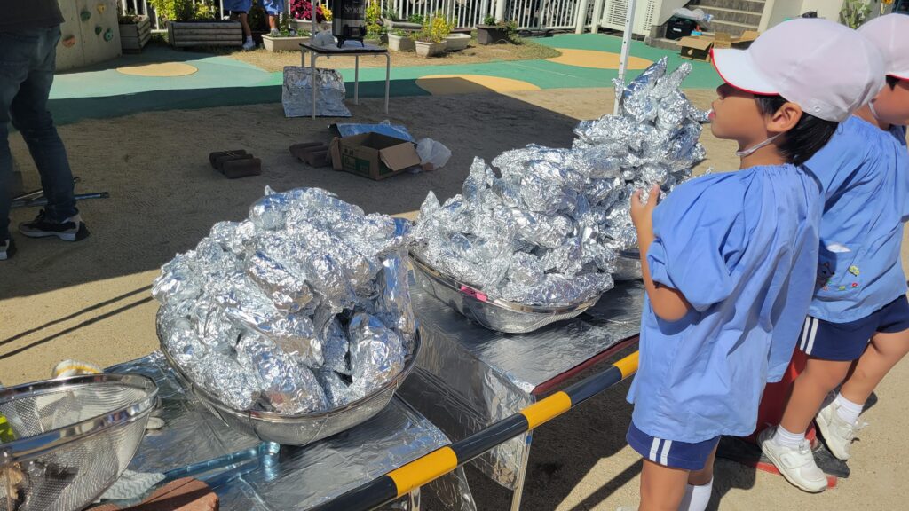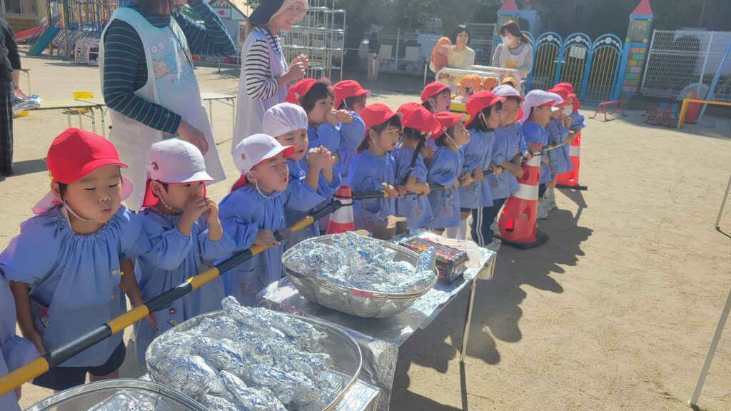 この日はお父さんたちは子どもたちのヒーローです!!長い時間ずっと焼き芋を焼き続けてくださいました。
