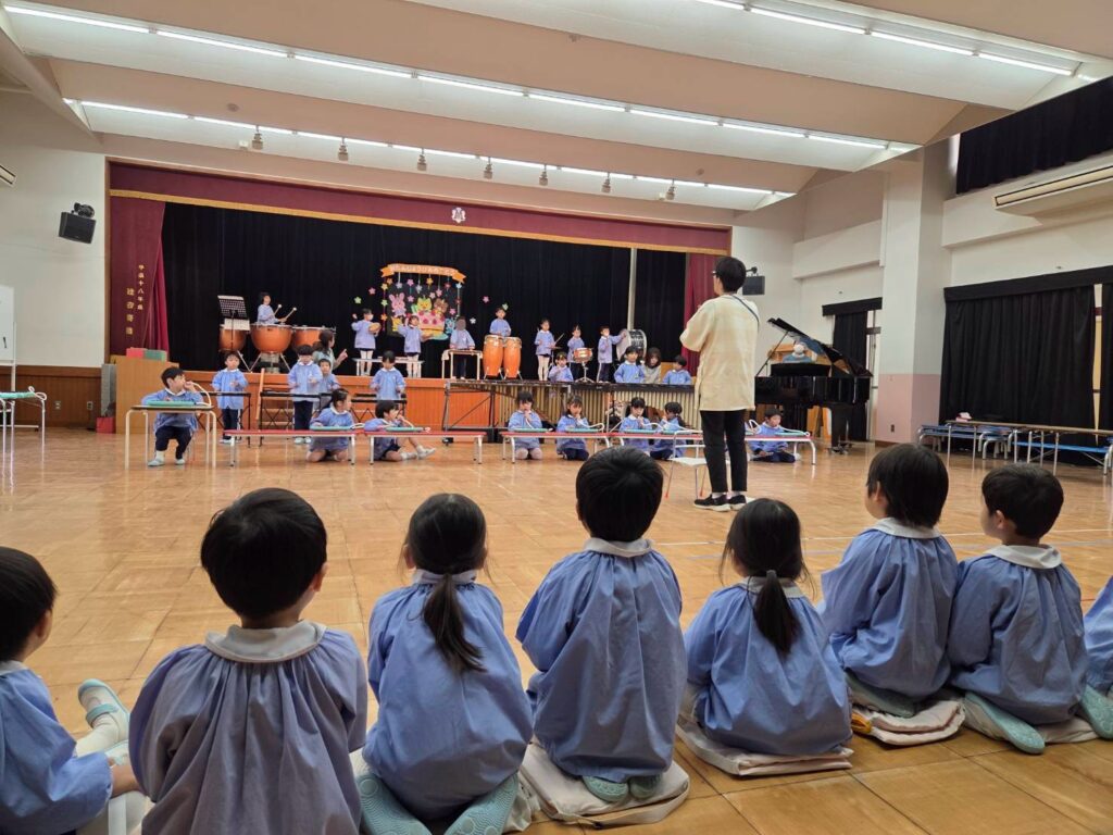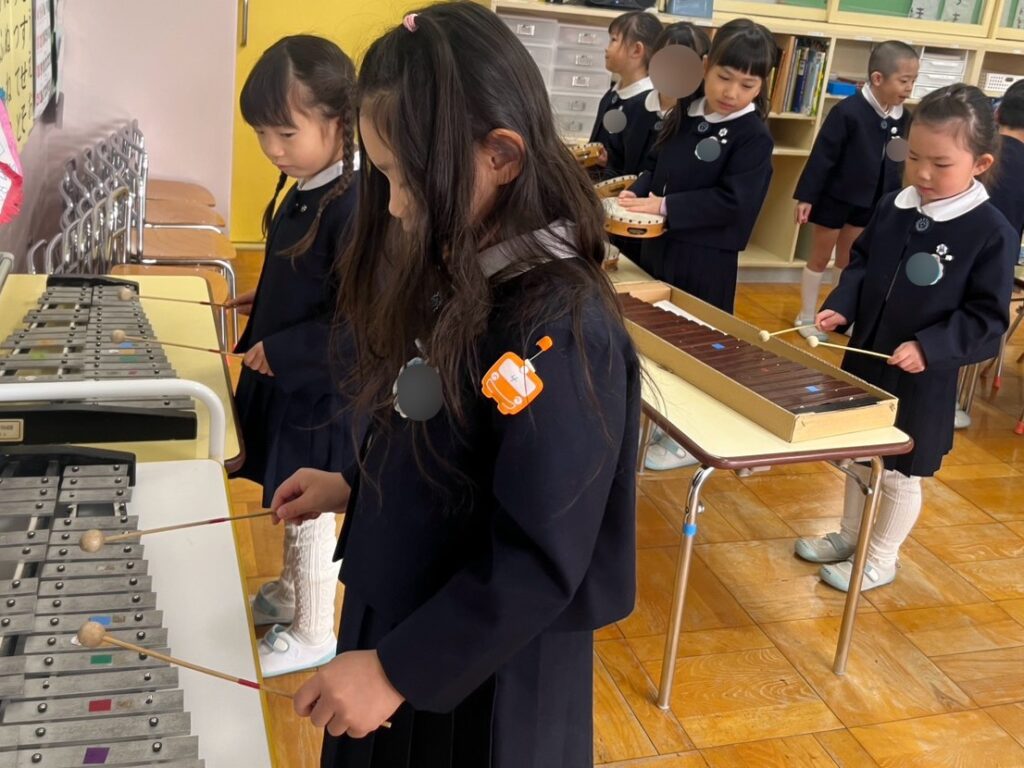 年中時から音楽講師の先生と一緒に様々な楽器やリズム遊びに触れてきました。その集大成を『合奏』という形であらわします♪