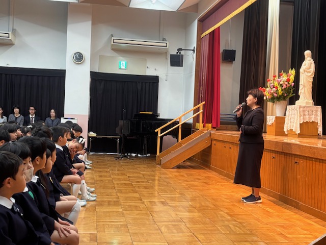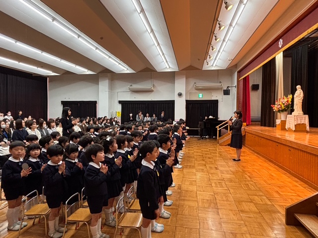 1年間の成長を感じ、見守ってくださった神様やマリア様、おうちの人や友だち、先生に『ありがとう』をたくさん伝え、ありがとうが広がる修了式。ご家庭でもきっと、たくさんの『ありがとう』が伝えられたことと思います。